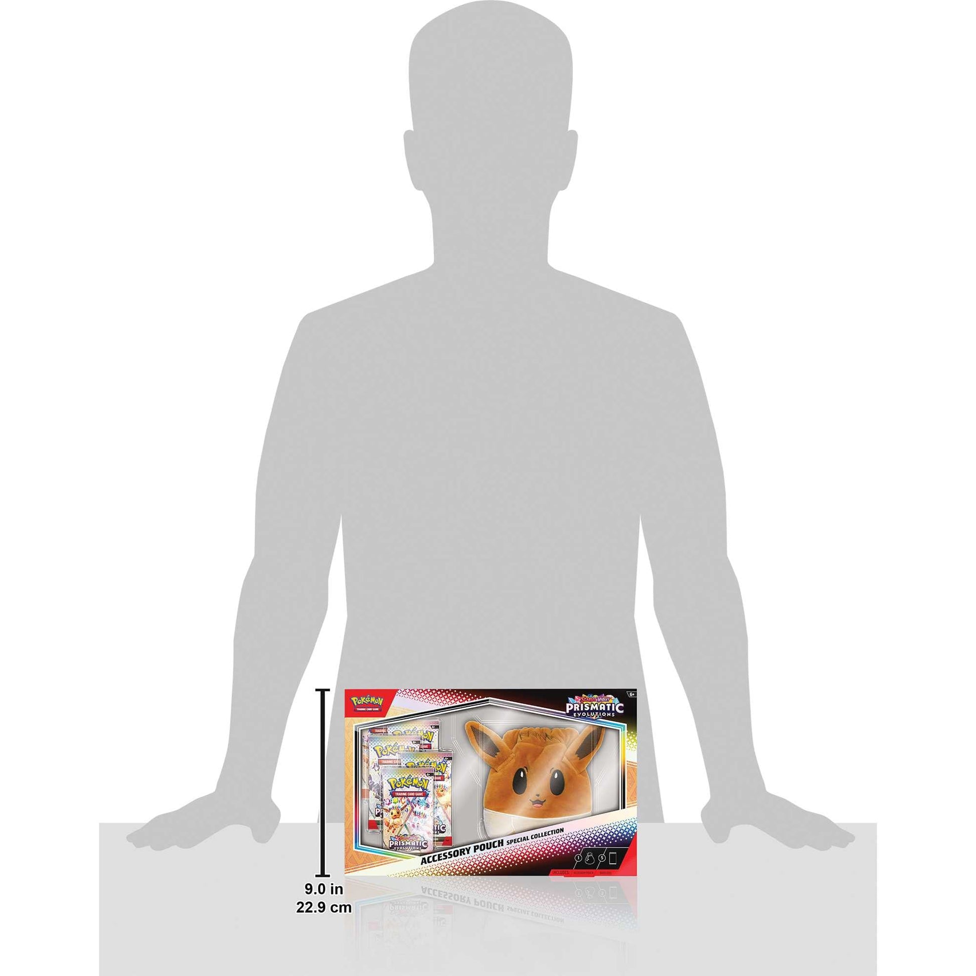 Cute, fuzzy, and full of charm, Eevee can bring a smile to the face of anyone it meets! With the soft accessory pouch in this collection, you can carry Eevee’s enthusiasm with you wherever you go, from Pokémon League to a day out on the town. Eevee’s big ears stand tall for a unique look, and the drawstring on top helps keep your coins and other accessories secure. Also included are booster packs from the special Scarlet & Violet—Prismatic Evolutions expansion, featuring more Pokémon fun inside!