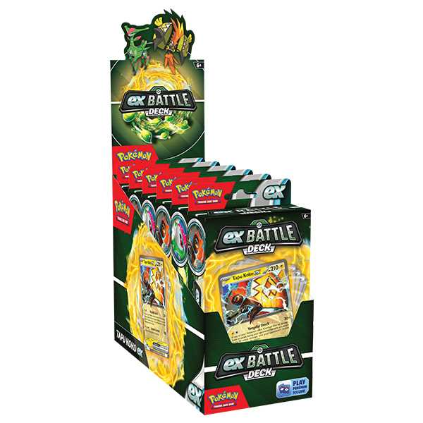 Mighty Pokémon ex Battle for Victory! Powerful Pokémon ex are ready to charge onto the battlefield in the new Pokémon TCG: ex Battle Decks! Each 60-card deck is led by an exceptional Pokémon ex and includes everything you need to play right away. Let the battle begin!