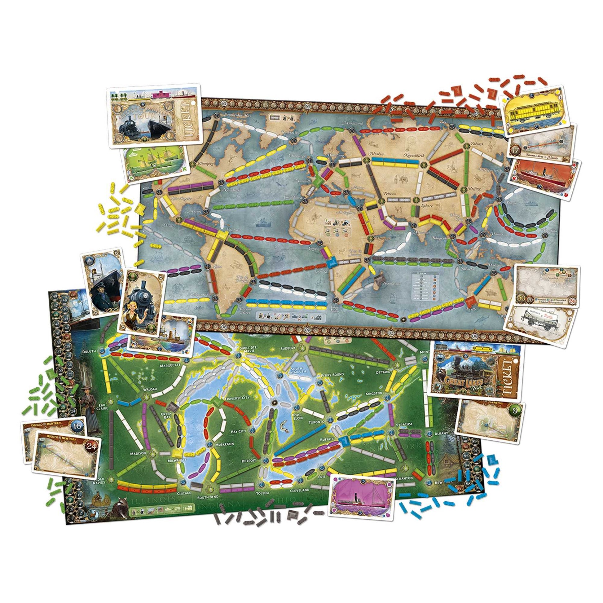 Build networks not only on land but across the sea with a globe-spanning new Ticket to Ride challenge! Construct harbours, lead passengers on long tours and manage multiple decks of train and ship cards.
